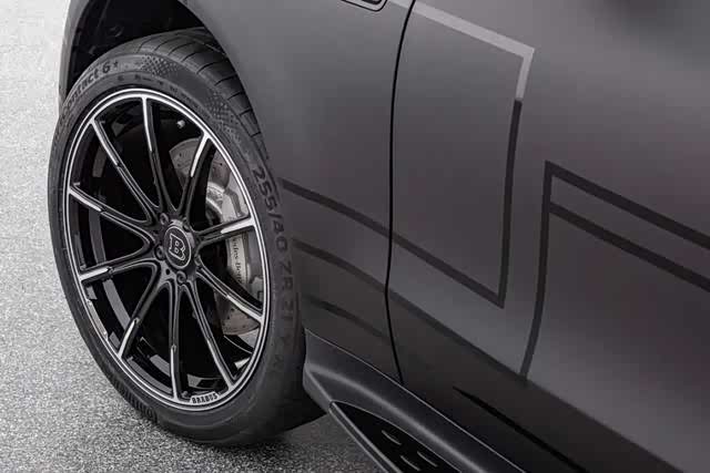 车身侧面中,线条原厂风格,前翼子板上的蓝色EQC得到保留。侧面也有一些电路板的纹路,在后门上有巴博斯的圆形B LOGO。此外,巴博斯为这台EQC配备了21英寸Platinum Edition系列Monoblock Z锻造轮毂,刹车系统就维持原厂不变。