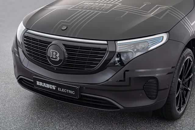 早前,作为奔驰御用改装厂商,巴博斯就推出了一款改装版的EQC,巴博斯版本EQC没有夸张的外观套件,只是车身颜色变成了亚光黑,然后添加了一些类似于“电路板”的纹路,这就彰显了一丝丝科技质感。前脸中一些原厂的镀铬部件进行了黑化,让前脸整体风格保持一致。