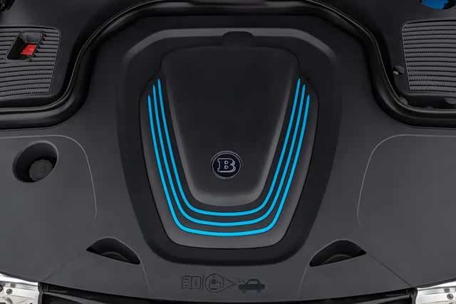 EQC的座舱科技感还是挺足的,巴博斯也没有太多可改造的地方,增加了一些自己车标的铝制配件,更换一下座椅面料。EQC原厂就带双10.25英寸液晶屏,车机系统搭载奔驰“MBUX”系统。