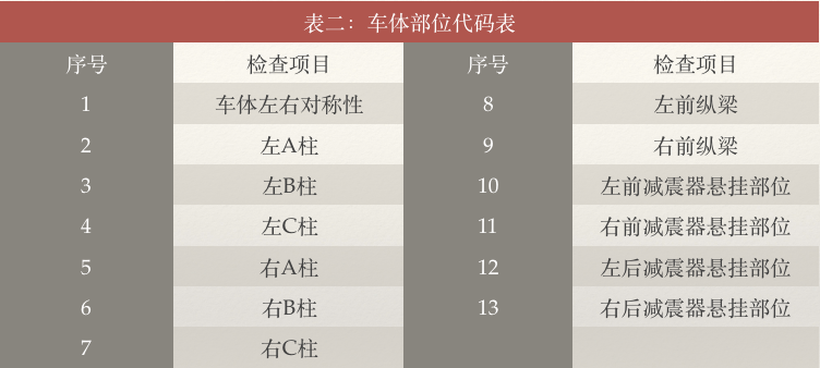 但你注意表二里第一项就是车体左右对称性,如果后部的撞击严重,伤及到后备箱底板和纵梁的位置,那后部的左右对称性肯定会发生变化,所以这个是事故车!