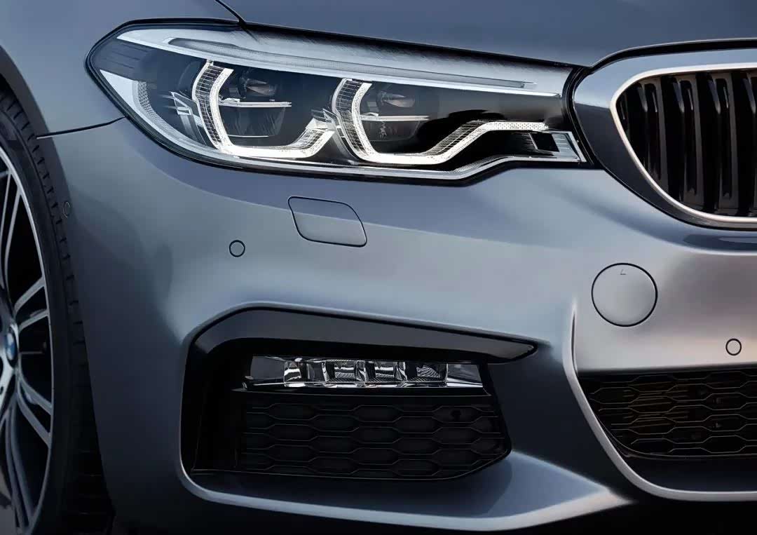 宝马近几年很多车型的基础版,也就是一般的BMW车型,都是分为M运动套装和豪华套装。从 宝马G30 5系最初发布的官图中,可以看出两者之间的差别主要体现在细节设计上,比如雾灯周围M运动套装是高亮黑色装饰,而豪华套装是镀铬的饰条。