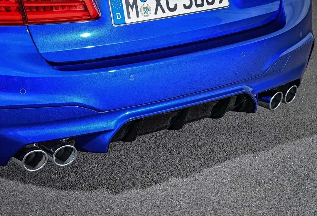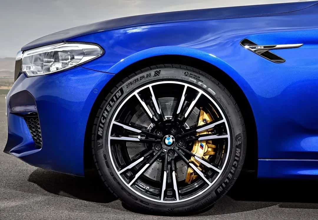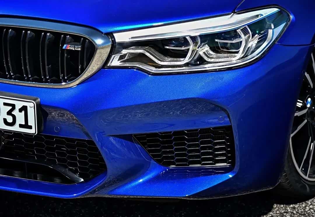 分辨M Power其实要比M Performance更容易一些,因为M Power家族的特征化设计非常具有辨识度而且已经闻名于世。带有“M5”标识的双辐竖形双肾格栅、巨大的进气口(无雾灯位置)、M运动轮毂(金色碳陶卡钳)、侧翼子板处专属标识、恶魔耳后视镜、“M5”尾标、双边共四出的排气以及碳纤维车顶等等,这都是可以证明M Power的地方。