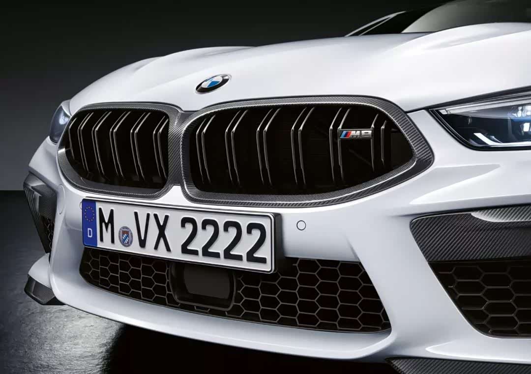 M Performance Parts主要就是针对视觉层面进行官方改装升级,而且不只是普通车型可选,M Power车型也可以选装M Performance Parts。相比于M运动套装,MP套件主要是在前后包围、双肾格栅、侧裙、翼子板、后视镜、轮毂、方向盘等处进行碳纤维或高亮黑饰板的改装升级。