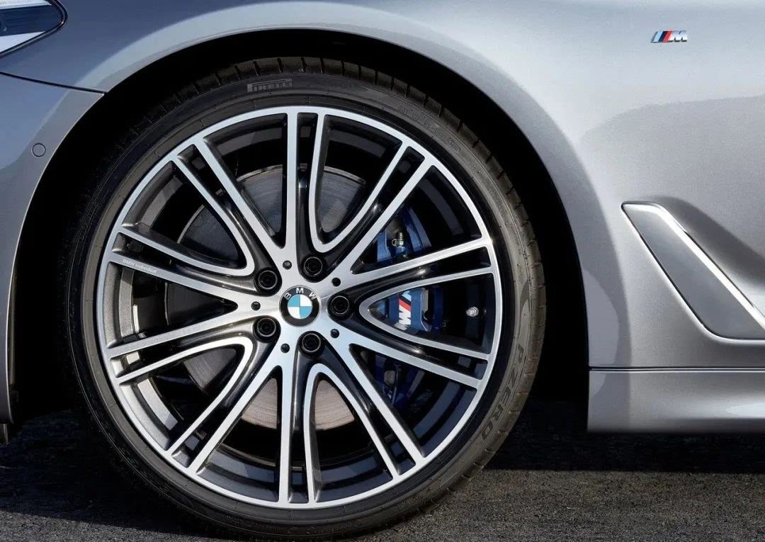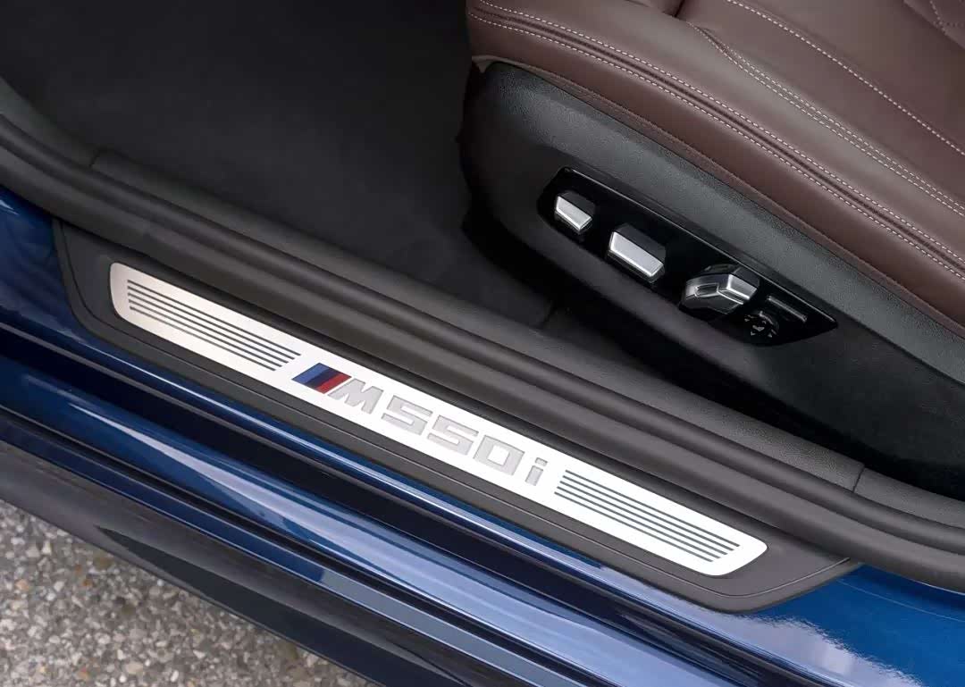 同样以5系来说,属于M Performance车型的M550i,相比于普通宝马M运动套装,在外观上的主要改变就是双肾、下包围饰条、后视镜等细节之处都变为枪灰色,同时配备专属的“M550i”尾标和踏板标识,轮毂样式也更运动化。