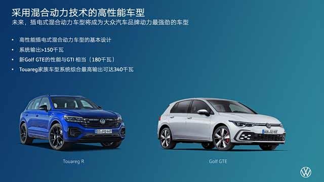 其实从这次日内瓦车展(日内瓦车展因疫情取消,大众集团通过网络直播形式公布了原本计划于车展发布的车型)期间公布的两款产品就能够看出大众对未来的态度。性能版车型途锐R破天荒的首次采用PHEV方案,虽然是通过移植保时捷卡宴PHEV版的动力总成,但其态度已然很明确,未来的R系列性能版车型大概率都将转变为PHEV方案。而影响更为广泛的高尔夫GTI车系,则是相对保守的采取了插混车型GTE与纯燃油车型GTI并行的策略,但两者被调教出了同样的动力输出数据,其铺垫的作用较为明显,相信下一代GTI也是大概率换成PHEV方案。PHEV将成为大众未来十年内的产品线主流。