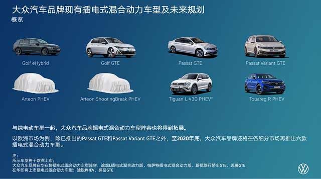 大众汽车品牌在华在售插电式混合动力车型阵容目前包括途观L插电式混合动力版、帕萨特插电式混合动力版、蔚揽旅行轿车GTE、迈腾GTE。而今年即将在华上市途锐PHEV,探岳GTE两款重要车型。