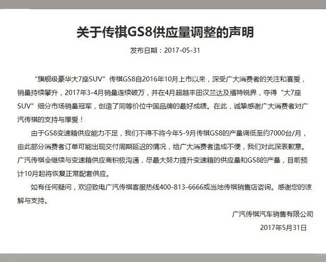 事实上,就6AT变速箱而言,爱信在中国市场几乎处于垄断地位。广汽传祺GS8就曾因爱信6AT变速箱产能供应不足,被迫下调自身产量。