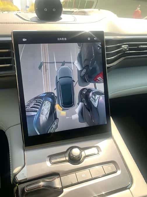 另外一个贴心小功能无意中被发现的时候,也惊艳到我了,就是当蔚来感应到车周边的物体超过安全距离的时候,就自动启用摄像头,那你就可以通过上帝视角来观察车身的通过情况。