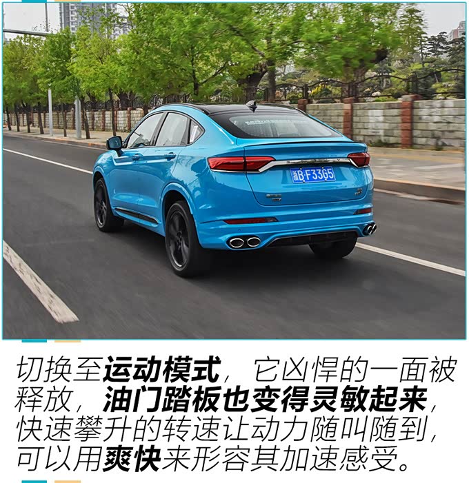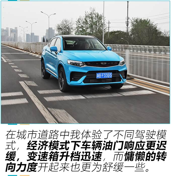 可一旦切换到运动模式,这辆轿跑SUV运动的一面就展露无遗,为了营造强烈的运动感,此时星越魅影骑士版的动力输出不再有任何克制,油门调校也变得灵敏起来,哪怕只是轻踏油门踏板,车辆也会有前窜的直接反馈。