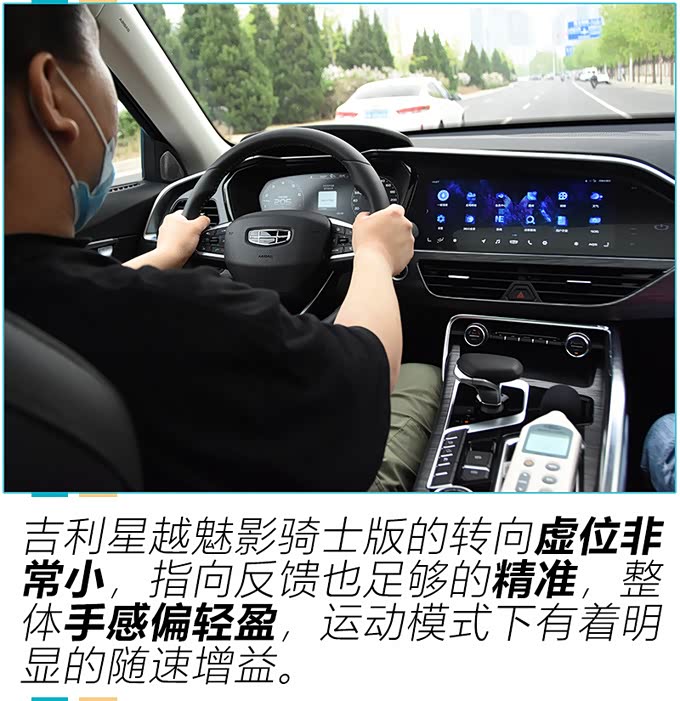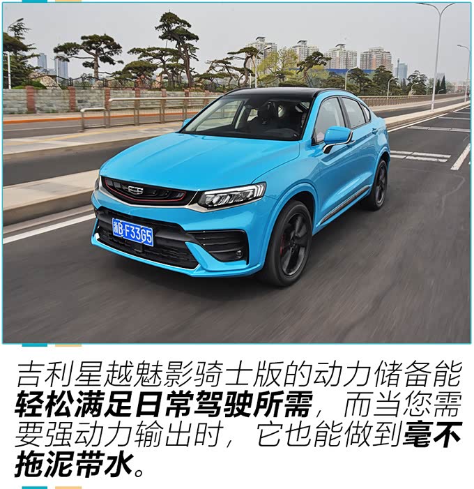 回到文章最初的问题,通过实际测试后,我们可以看到吉利星越魅影骑士版具备出色的性能表现。而另一方面,在日常驾驶中,成熟的调校手法,让吉利星越魅影骑士版提供了无懈可击的驾乘感受:在保证日常舒适性和通过性的同时也能让你释放一下自己追求运动操控的需求。作为一款特别版车型,吉利星越魅影骑士版在原有的轿跑型SUV车身造型基础上,通过一系列独立个性的内外细节套件将运动氛围提升到一个新的高度。若您想购入一台轿跑SUV,但又苦于购车预算有限,那么这台吉利星越魅影骑士版车型可以作为性能及个性兼备的好选择。