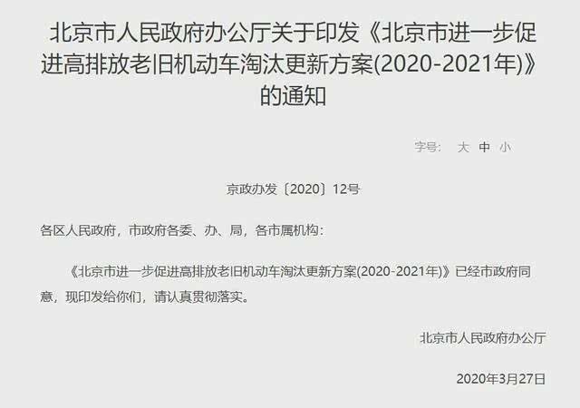 奖励标准:1、2020年4月至12月底,针对报废高排放老旧机动车的车主,补助微型、小型、中型和大型载客汽车4000元至22000元不等,补助载货汽车14000元。