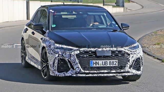 一组全新奥迪RS 3 Sportback的最新路试谍照近日曝光了出来。由于此次曝光的新车伪装面积大幅减小,所以也进一步地展示了新车的更多细节。从外形来看,新车将会采用与全新奥迪A3相同的头灯组,发动机盖上方隆起的线条也保持了一致。但是,其前保险杠经过重新设计后,使新车前脸变得非常凶悍,两侧尺寸较大的进气口、蜂窝状前格栅等都凸显出该车浓厚的运动气息。