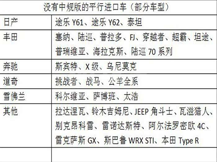 在平行进口车中销量前五的,丰田陆巡、日产途乐、丰田普拉多、三菱帕杰罗、丰田塞纳,真的是全军覆灭,一败涂地。