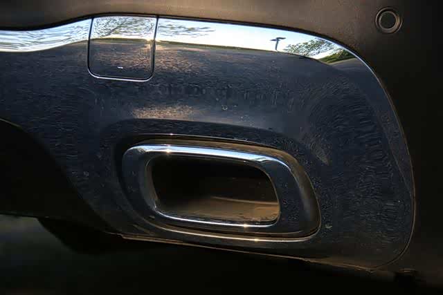 前后杠镀铬装饰也没缺席,粗大的排气管其实是装饰,但是设计的高明之处在于并不是平面,而是凹进去并嵌套了一个黑色橡胶套,站着看过去,视觉效果其实还是比较真的。