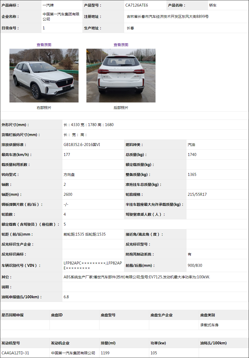 面对销量不佳的现状,奔腾T33开始自救,推出动力更强车型是它的第一步。在工信部第332批《道路机动车辆生产企业及产品公告》中出现了奔腾T33新车型。名为CA7126ATE6的奔腾T33新车型搭载CA4GA12TD-31发动机,这款1.2T发动机采用直列4缸设计,最大功率105kw、最大扭矩204Nm,相比1.6L车型的84kw、155Nm分别提高21kw、49Nm,这也可以改变奔腾T33现有车型动力一般的短板。传动系统方面,奔腾T77 1.2T车型采用6速手动和7速双离合变速箱的组合,小猫认为它们也会出现在T33上,从可靠性、平顺性的角度来看,小猫更期待奔腾T33能像捷达VS5一样配备爱信6速自动变速箱。