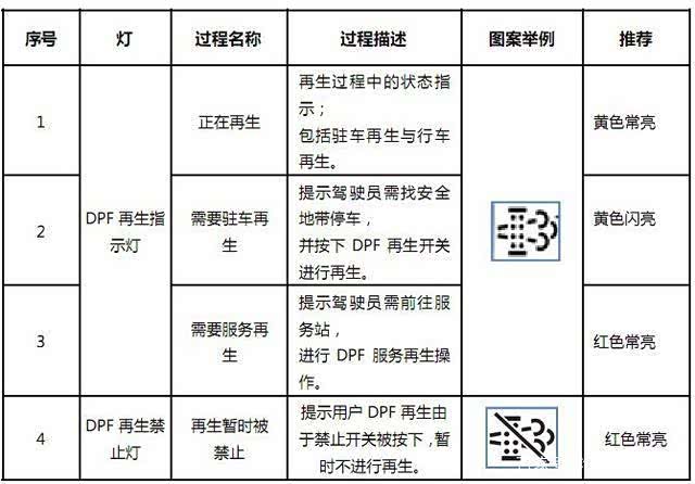 行车时该灯亮起时,说明发动机的DPF正在行车再生,司机无需执行任何其它操作。