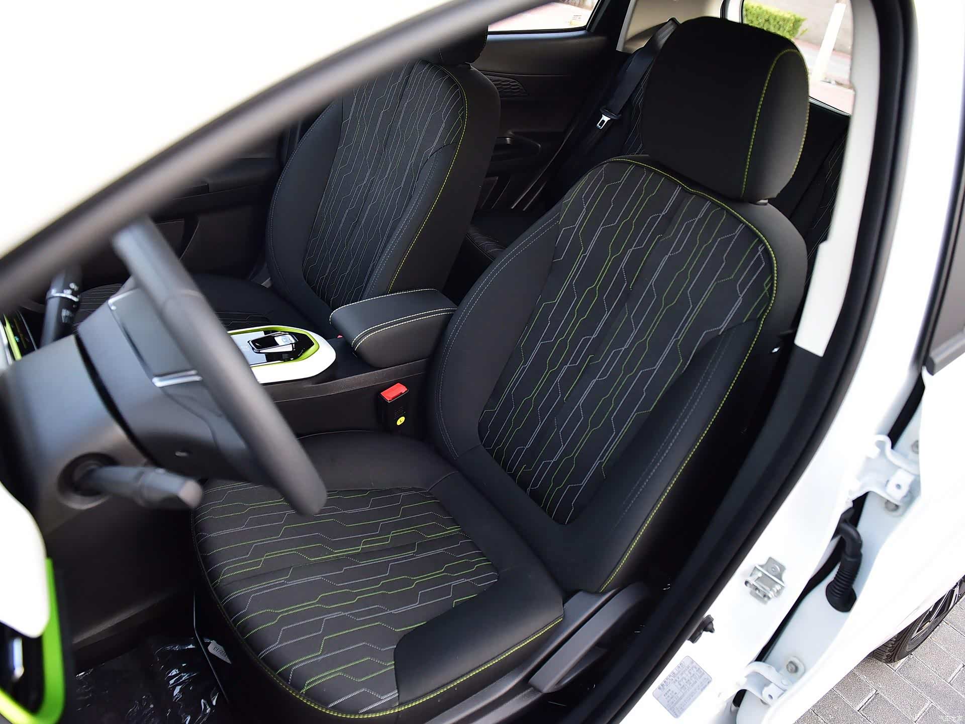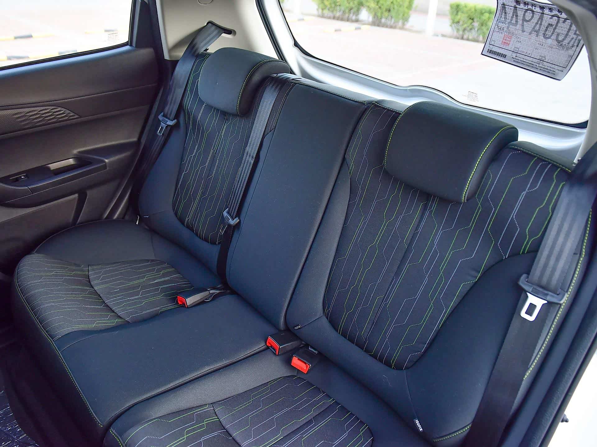 织物座椅的样式同样也非常有意思,坐垫和靠背上的花纹,与挡杆区域采用了相同的设计元素,因此整套内饰、包括座椅在内,会给人整体感非常强的观感。另外前排座椅还使用了绿线进行缝制勾边,在一定程度上活跃了以黑色为主基调的内饰氛围。
