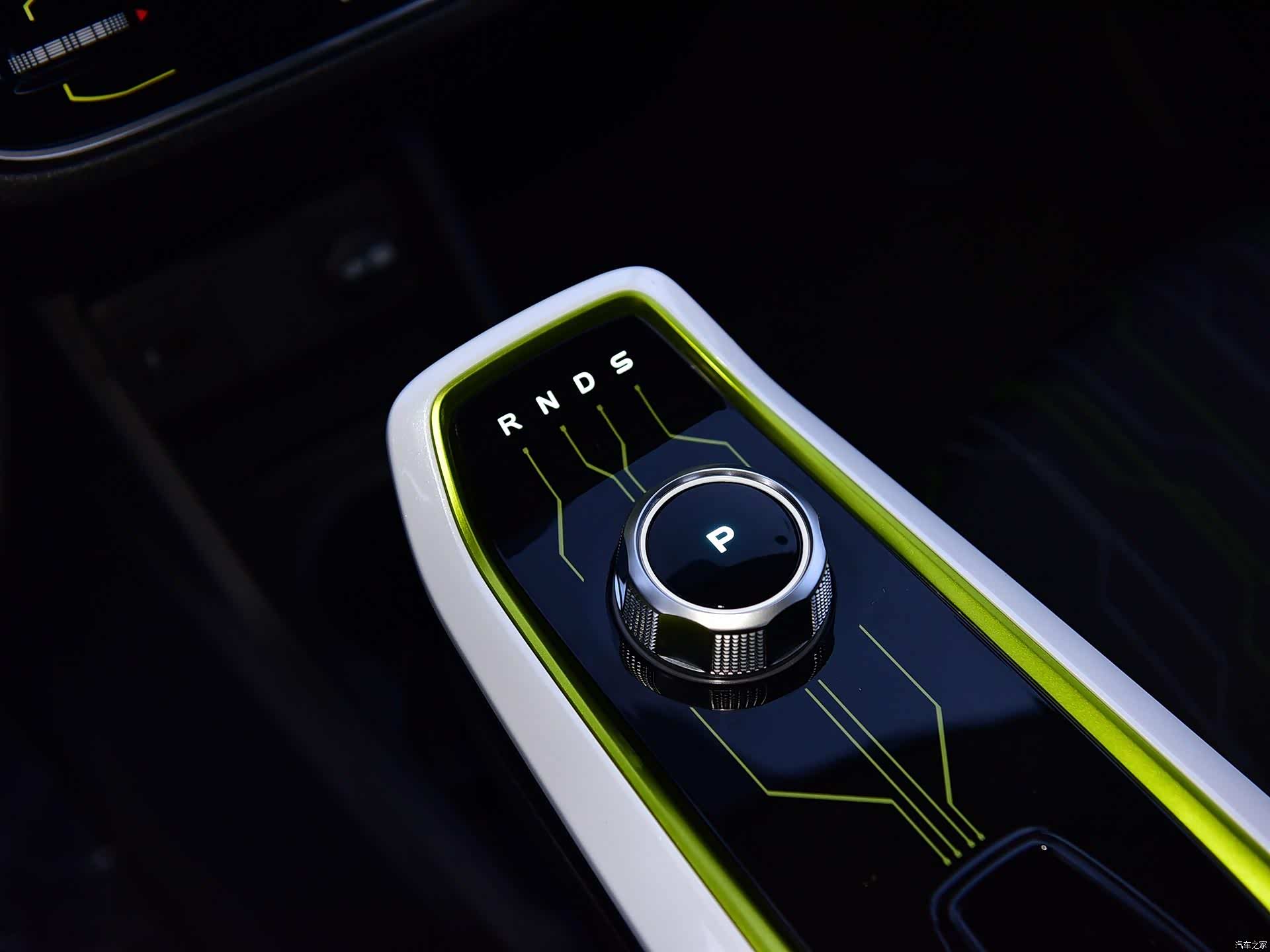 奔奔E-star的中控池换挡区域并没有和中控台相连,而是与后方的扶手集成在了一块,从而在前部的位置留出了一个储物槽。当然更大的亮点是旋钮式的换挡机构和电子手刹按键,既小巧不占空间,又方便了操作,同时造型配色还与中控整体做了呼应。