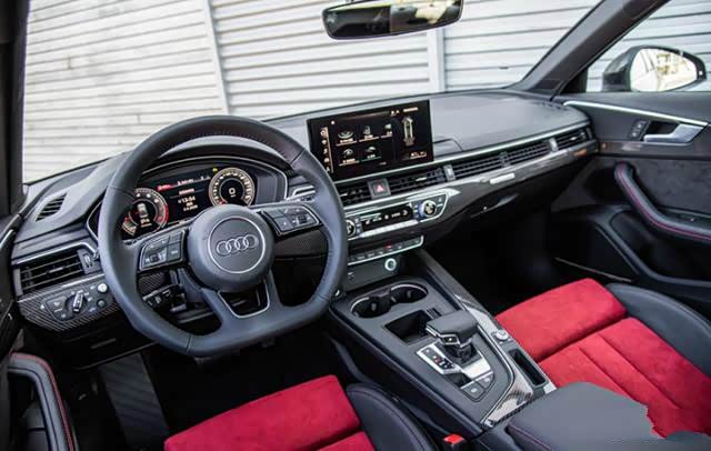 侧面变化不大,主要是腰线有所改动。19款A4是一条贯穿头尾的腰线,2020款的侧面由3条位置不同的腰线组成,3条腰线相接也能贯穿头尾。四活塞红色卡钳,19寸轮毂和较低的轮胎扁平率,使得整个侧面看起来运动性很强。