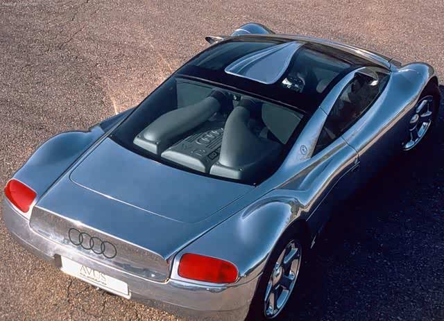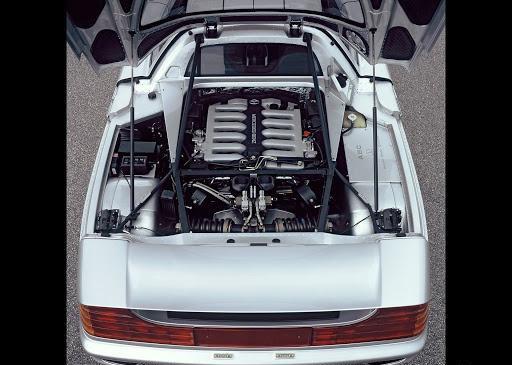 这应该算是90年代概念车风潮的开始。1991年奥迪于东京车展发布了Avus Quattro,中置W12引擎,四轮驱动。你可以把它看作是R8的祖先。整车用铝合金来打造车身,厚度仅为1.5毫米。极致轻量化的车身仅重1.25吨,搭配509匹马力的W12,可以在3秒内完成0-100km/h的加速,极速超过320km/h。