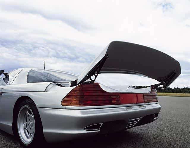 黑科技还包括诸如后轮转向,集成式的ESP和ABS,甚至最新的智能巡航系统,就是我们现在常见的ACC。当然,作为跑车,动力系统不能落后。中置后驱V12,408匹马力,580牛·米的力量通过6速手动挡传递到车轮上。百公里加速4.9秒,极速300km/h,奔驰经典车型历代传承鸥翼门也出现在C112的身上。