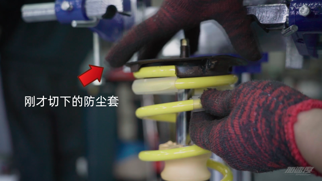 虽然V3自带防尘套,但是我们还是需要切割原厂防尘套上面一部分,作为弹簧和塔顶的垫胶。这就是阅读说明书的重要性。