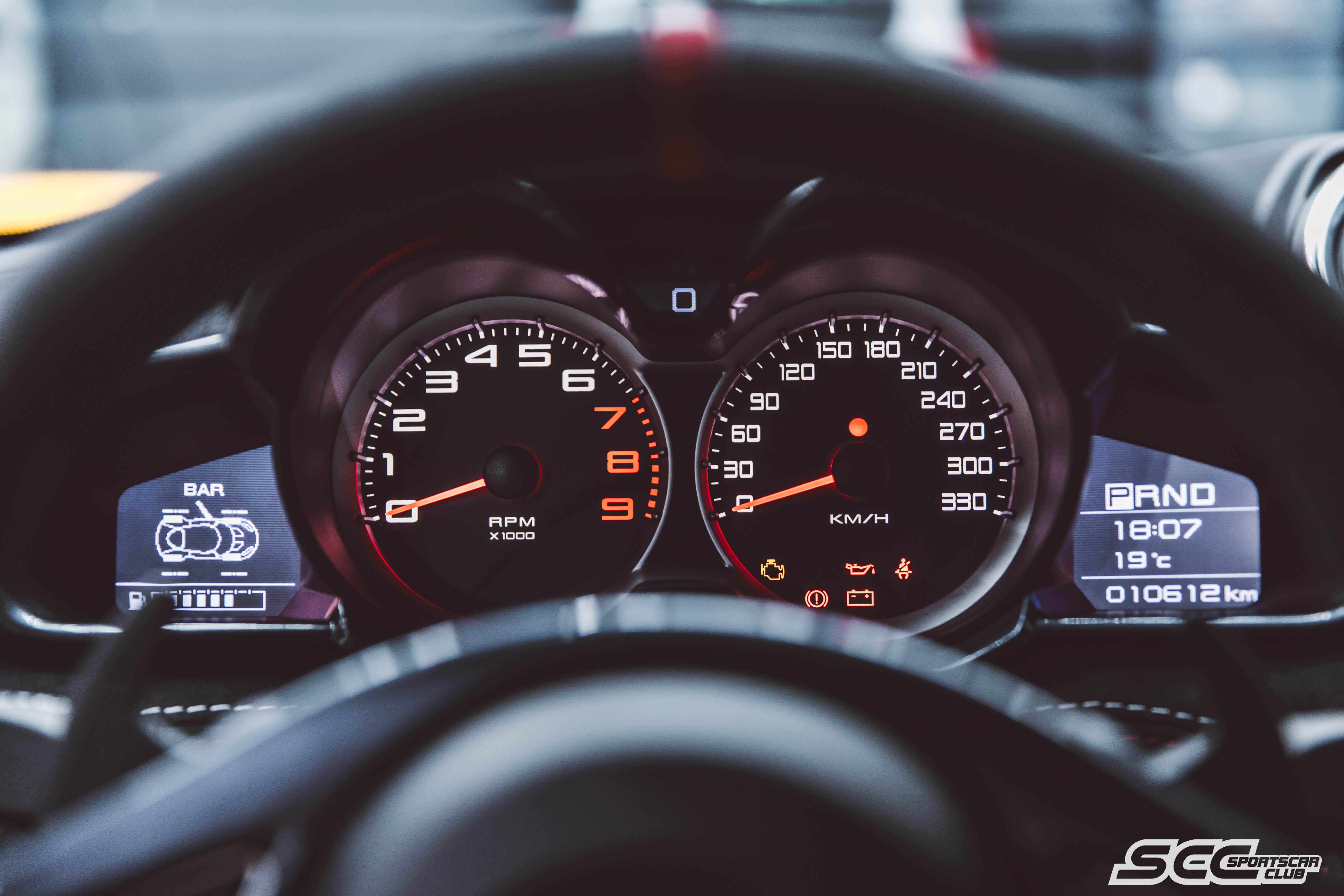 不过后方视野就……你只能透过引擎盖上的“百叶窗”观察身后状况,这是驾驶中置引擎跑车的必备技能。毕竟大多数时候(赛道上),你只需要往前看就OK了。