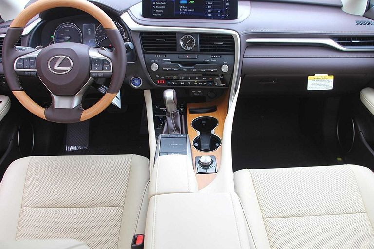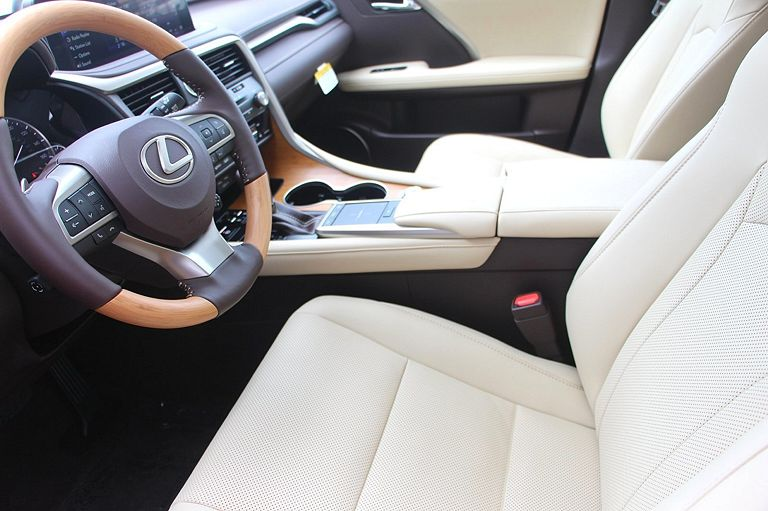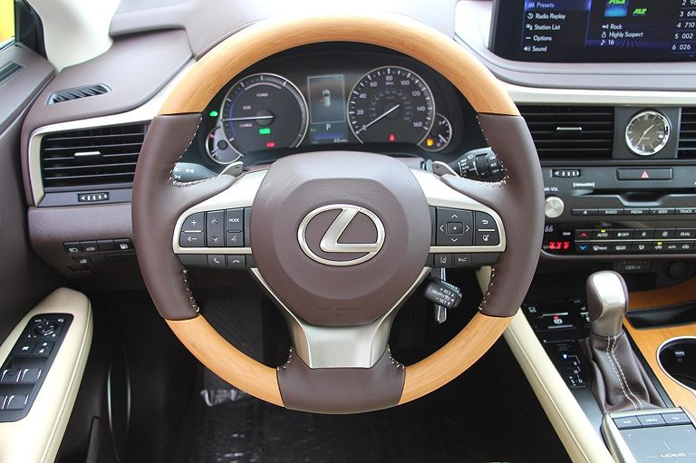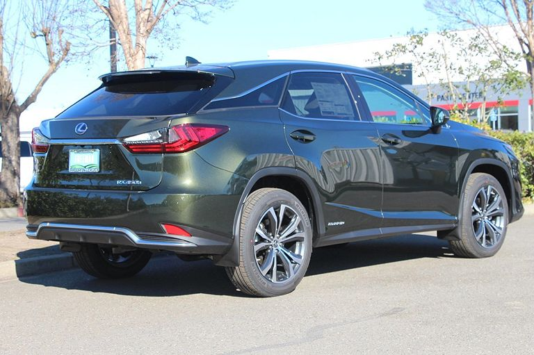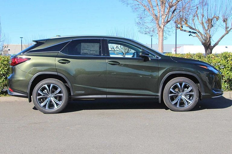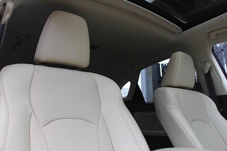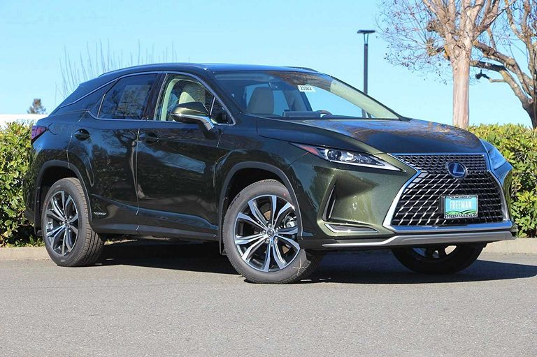雷克萨斯RX,定位中大型SUV,实拍。外观采用绿色涂装非常时尚,高大的车头很有气势,前脸进气格栅采用纺锤式的造型非常有辨识度,精致的前大灯采用很有神韵的造型点亮后效果出色,两侧的导流口设计动感,前脸处理精致。侧面采用硬朗大气的造型,车顶行李架增添了实用性,车窗边框采用镀铬条包裹很有质感,车门凹面处理锋利,轮毂采用个性独特的造型。尾部采用沉稳庄重的造型,扰流板设计时尚,尾灯采用很有立体感的造型。车内颜色搭配温馨,方向盘手感细腻,中控屏设计时尚,按键布局简洁,用料考究,做工精细。