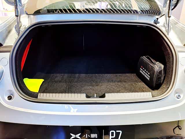 由于采用了溜背造型,小鹏P7的后备箱高度相对一般,不过优点是开口相对较大(以非掀背式的轿车标准来看),而且里面的进深还OK。另外P7也没有配备备胎,只提供了简单的补胎工具。不过由于考虑购买P7的用户更多的是在城市中行驶,因此这样的设计也完全没问题。