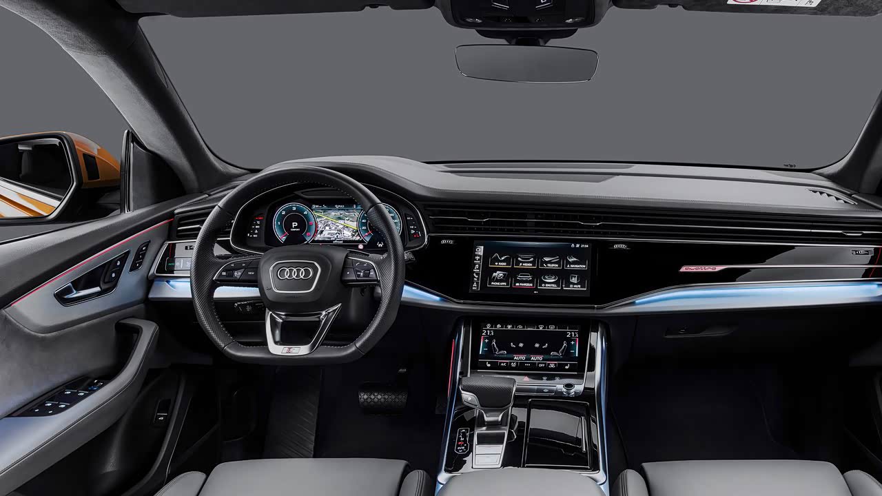 许多车友都说在内饰中采用多块大屏幕是新创车企惯用的简单粗暴的方法,但同样的方法在奥迪Q8上似乎较为克制和追求细节。仪表盘为全液晶屏,尺寸大,显示的内容直观清晰,但并非刻意追求尺寸的大。信息布局的合理和合乎逻辑的菜单布置才是其体验良好的根本。中控区的MMI触摸屏带有震动和声音反馈,操控感较为立体,几乎可以达到接近实体按键的体验。