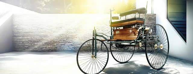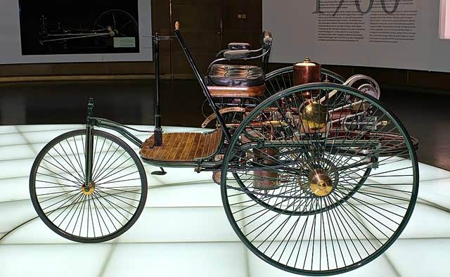 奔驰PATENT Motor-Wagen从设计上遵循了很多脚踏车和马车的原理,比如说手持式转向杆,而且也采用了脚踏车的轮胎,可以看到它就像马车一样坐垫和坐姿。