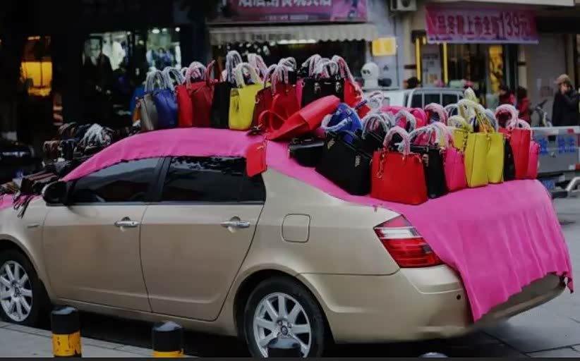 把货品摊放在车身上,再打开后备箱挂一点,可以说是最大限度的利用了车上的空间,虽然原来可能会因为来不及收东西而被抓,但现在根本不用考虑这点,所以放心大胆的摆吧!不过如果你家是一台MPV或是较高的SUV车型,还是放弃吧...放上去挺累的,来买东西的人还不一定看得见货。