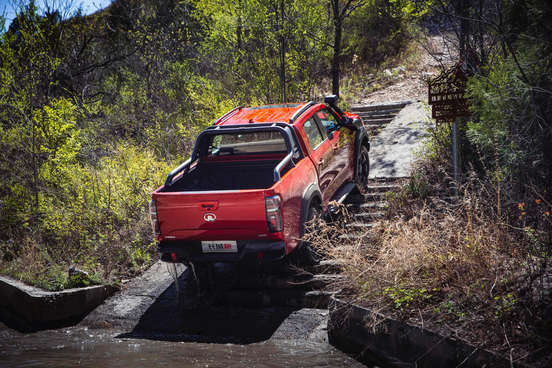 长城炮越野皮卡采用非承载式车身结构,前悬架为双叉臂式独立悬架、后悬架为多连杆整体桥式非独立悬架,车身结构利于应对越野路况。新车还标配四驱系统,提供中央差速器锁、前桥差速锁、后桥差速锁,并且原厂自带蠕行模式与坦克掉头功能,越野能力不弱于市面上的硬派越野车。