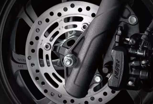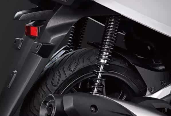 新大洲本田PCX150避震系统采用了正置前减震;后弹簧减震,行程加长三段可调,调校偏于硬朗滤震效果十分出色。制动系统采用了前碟后鼓设计,并匹配了CBS刹车联动系统,有效保证车辆紧急制动时的车身稳定与安全。前后真空轮胎规格为前100/80-14M/C48P,后120/70-14M/C61P。