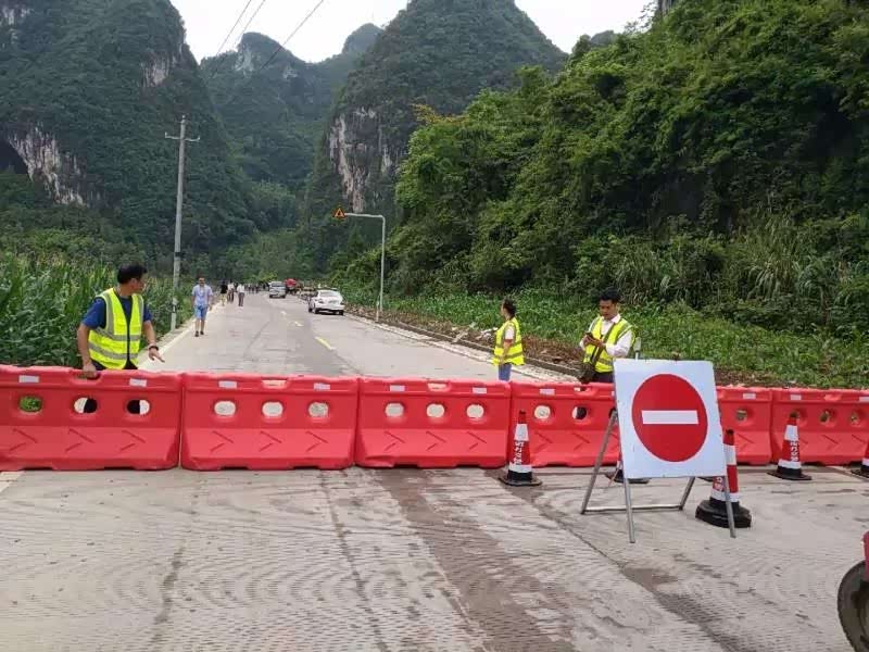 2020年6月9日8时50分,受强降雨影响,南丹公路养护中心管养的G243线(开县至凭祥公路)K1218+200-K1218+800)城关镇拉易村至拉易隧道路段,因山洪暴发致洪水淹没道路交通受阻中断,道路淹没受阻路段约600米,水深1.2米左右,现场无人员伤亡,道路淹没路段两端有滞留车辆约20辆,交警值守人员正在劝返过往车辆。南丹公路养护中心正在组织相关人员到达现场洪水淹没路段两端设置禁止通行警示标志,因无法估计洪水何时消退,无法预计通车时间。南丹前往里湖方向的车辆无绕行路线可通行。