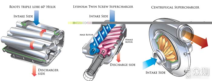 罗茨增压器原理和鲁特式其实差不多,只不过罗茨增压有连需要所的特性,所以增压效果更好,但是双螺杆加工难度很大,可以说是非常高端的增压方式。当然,呼呼作响的增压声也是跑不了的。