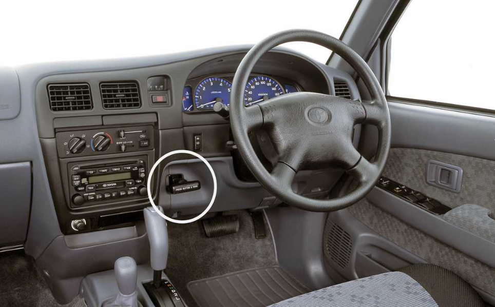 这一类手刹是相比之前的设计都更加特别,特别的并不是手刹的设计,毕竟都是普通的拉杆式设计,操作方式也比较简单。它们的特别之处在于被放置的位置,可能在工作台上的任何一处。例如图中的第6代丰田海拉克斯就将手刹放置在中控台和方向盘之间的区域。