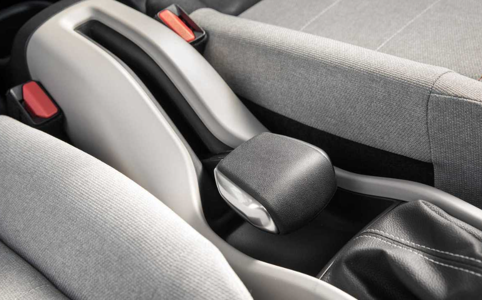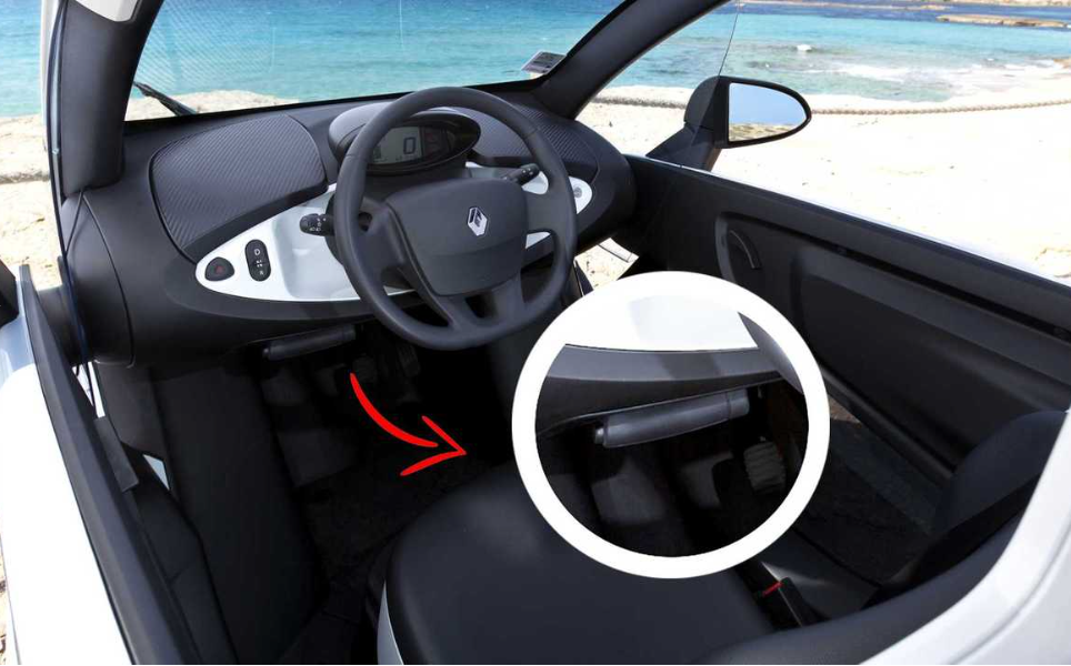 而像雷诺Twizy EV主角这样的单人电动车本应采取电子手刹,但设计师可能觉得宝贵的电量更应该用来驱动车辆而不是用在驻车上,所以依旧采用了机械手刹。不过受制于车内狭窄的空间,拉杆式手刹被放在了工作台的下方,十分隐蔽。