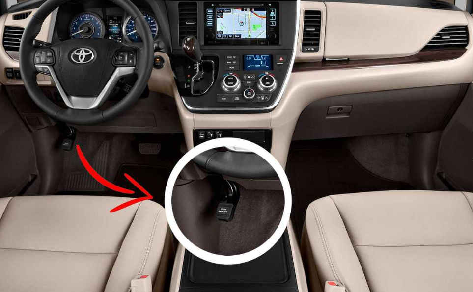 除了最普遍的那种放在中控台上的传统机械手刹,这应该算是第二流行的机械手刹设计了。顾名思义,这种驻车制动器被设计成用脚来操作,在美国尤为流行,国内也有不少车型使用。比如图中的丰田塞纳,还有我们熟悉的汉兰达,楼兰等等。这种设计往往被用于尺寸较大的车型上,通常是因为这类车型前排为贯通式,没有空间安放传统手刹或为了留出空间以便于储物以及操作力度较大,力气较小的女性容易出现操作不到位的情况,所以被设计成用脚来操作,方便又轻松。释放的方式也很简单,只需再次深踩一下或拉动专门的拉杆即可。拉杆通常被设计在工作台上,方向盘左侧与车门之间的区域。
