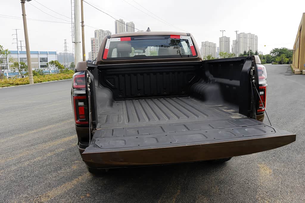 长城炮乘用版的货箱尺寸是1520mm/1520mm/538mm,装载能力非常强悍。除了配备有粗壮的龙门架,货箱门液压连接杆、防刮防腐涂层,这些细节处也做得十分到位,在同级别车型中也属于高配。