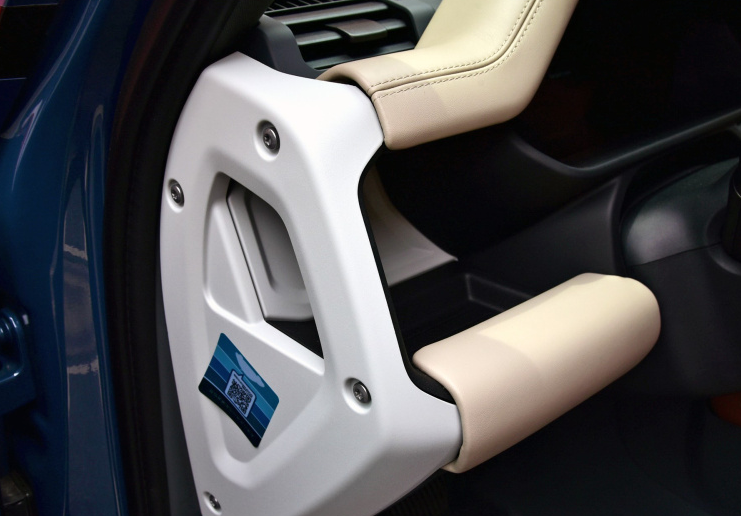 新卫士的内饰也是天翻地覆的变化,中控台由镁合金材质制成,表面喷涂工艺之前大多是用在车底来进行一些保护,但设计师觉得这很好看,实际效果也非常的出色。