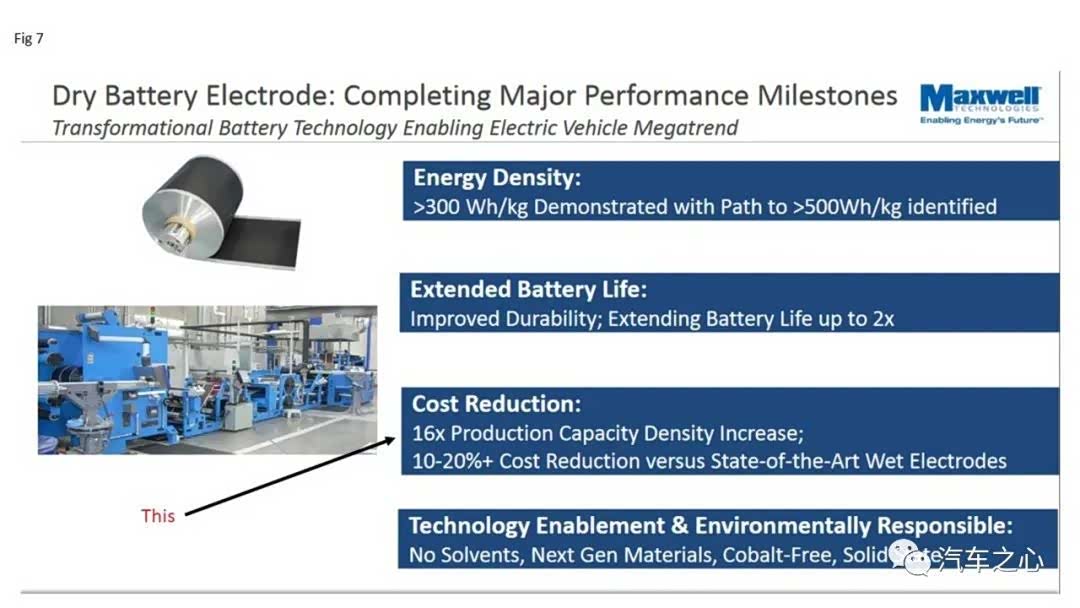 Maxwell 则声称,用了自家技术后能量密度能达到 300 WH/kg,增长高达 42.8%。