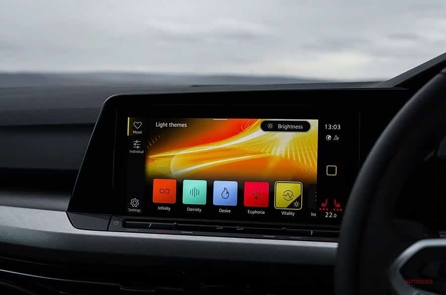 内饰可以说是这次第八代高尔夫的亮点所在了,科技感、品质感均比现款有明显提升。这辆1.5T手动挡的英国版内饰同样很不错,大尺寸的液晶仪表,中控大屏,贯穿式的空调出风口,都显得很有档次感。