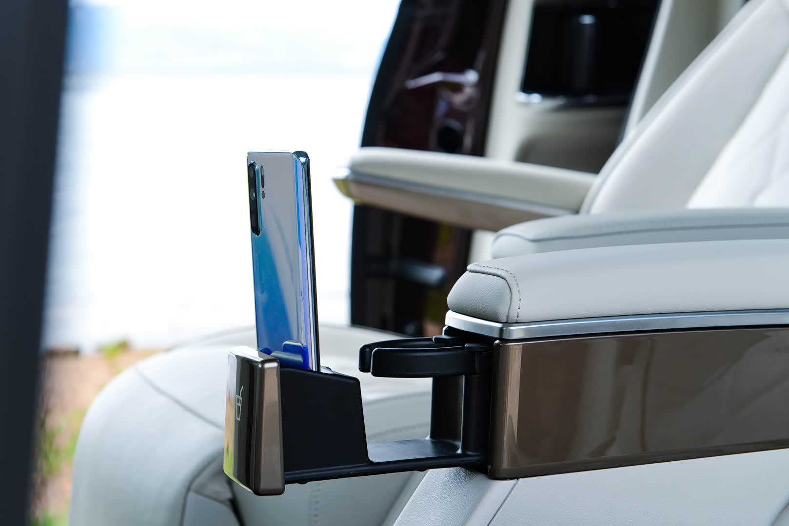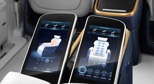 中央扶手,不仅集成了两个独立的触控屏,还配有手机无线充电功能。旅客可通过本屏控制上述按摩功能,或将座椅一键平放,随时睡上一觉。