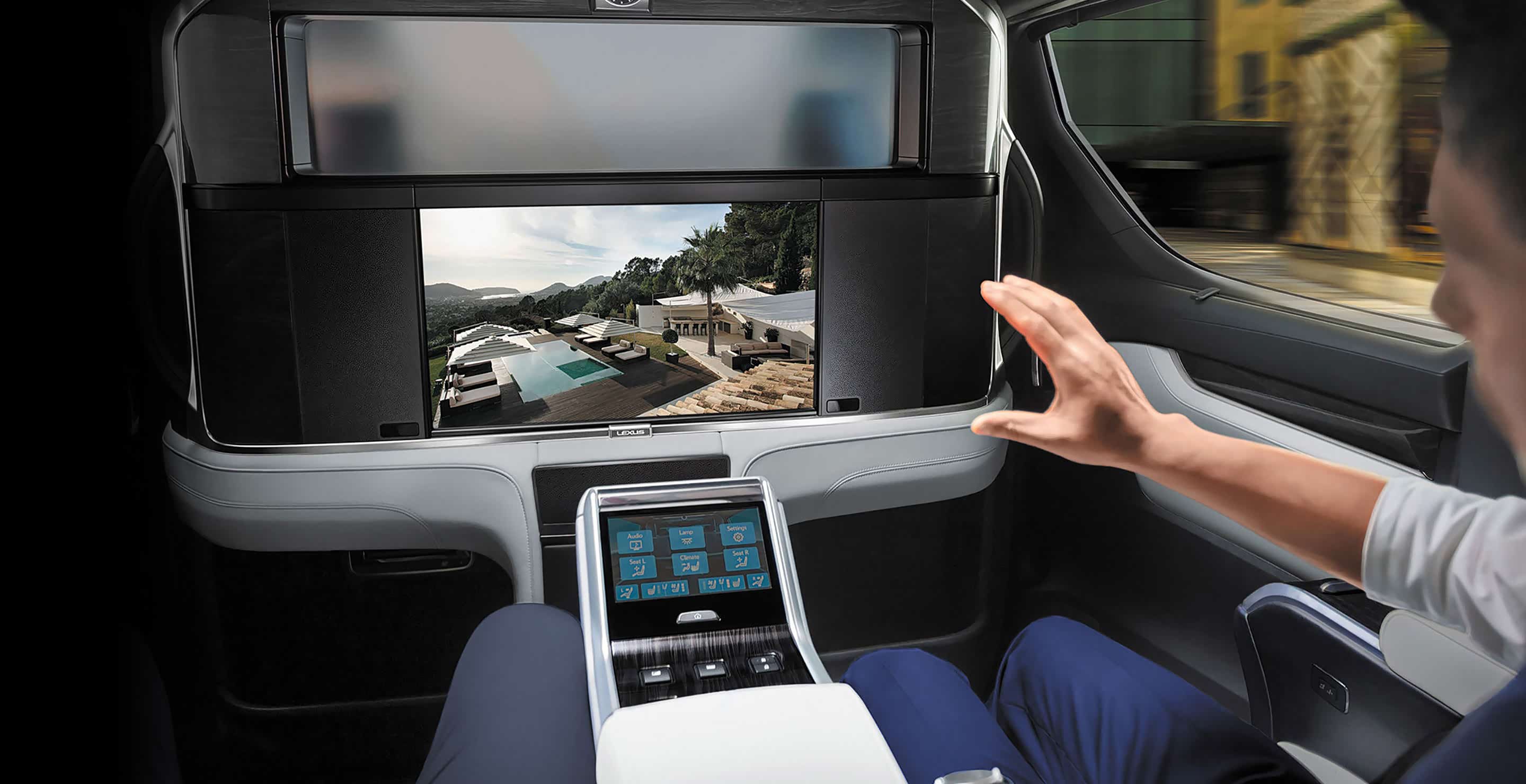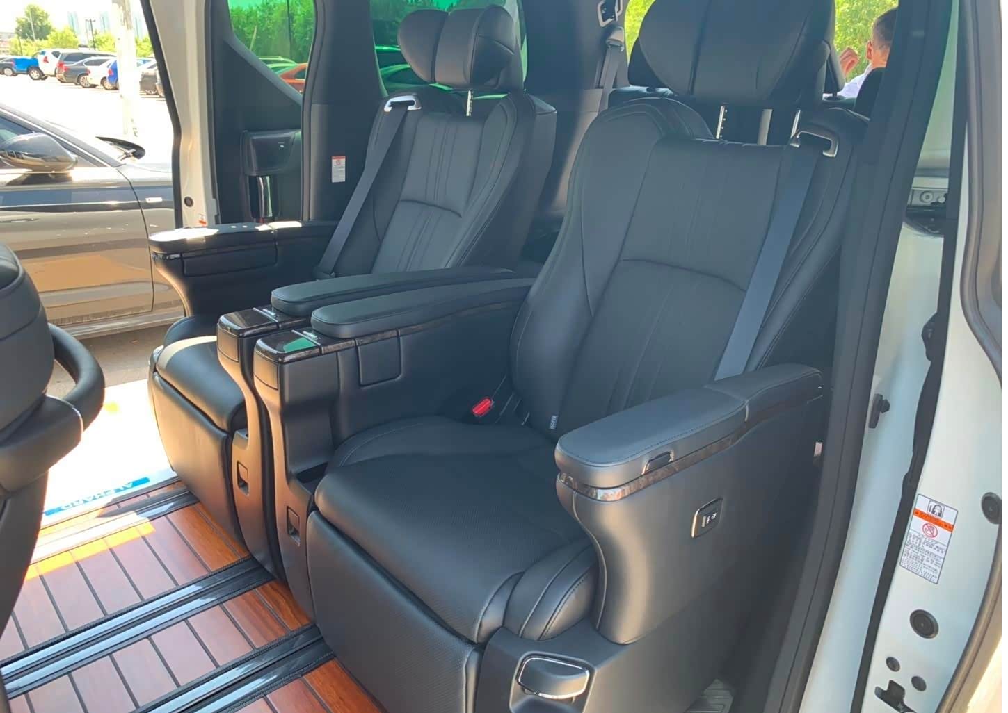 LM的内装依旧保持了雷克萨斯豪华品牌应用的质感与氛围。内饰提供黑色和黑白双色两种配色,同时还可选择带隔断的双排4座和三排7座两种版本,其中七座版也采用2+2+3式座椅布局;四座版才是最精彩的,咱们看看这个。