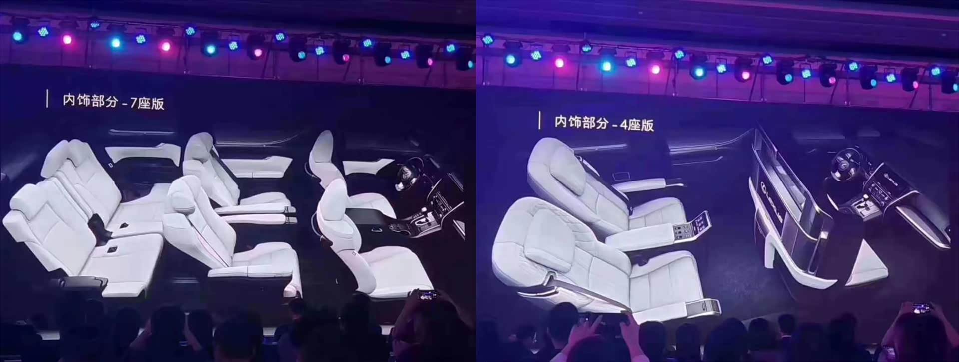 新车的内饰设计沿用了此前概念车的设计思路,在操作区域方面采用精简化的风格。然而细节方面确十分精细,中控面板带有全新专属三维立体菱格波纹浮雕设计。仪表盘与中控屏幕为双12英寸的联屏设计,搭配14英寸的HUD抬头显示器,豪华与科技并存。
