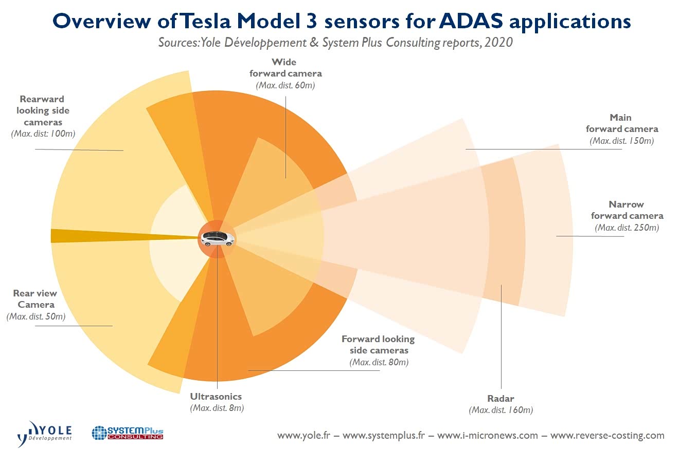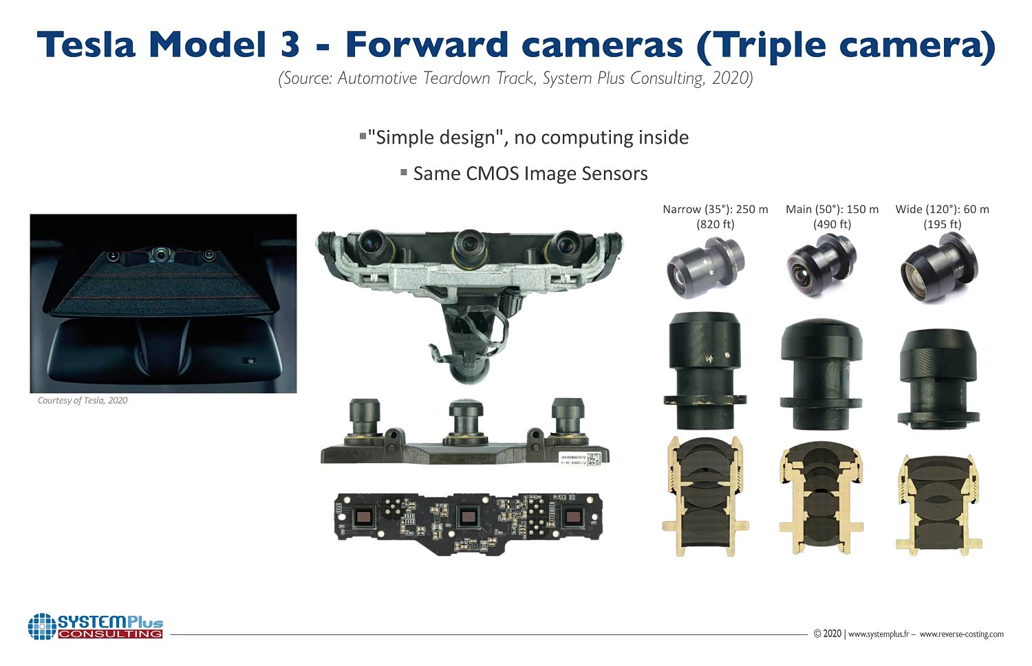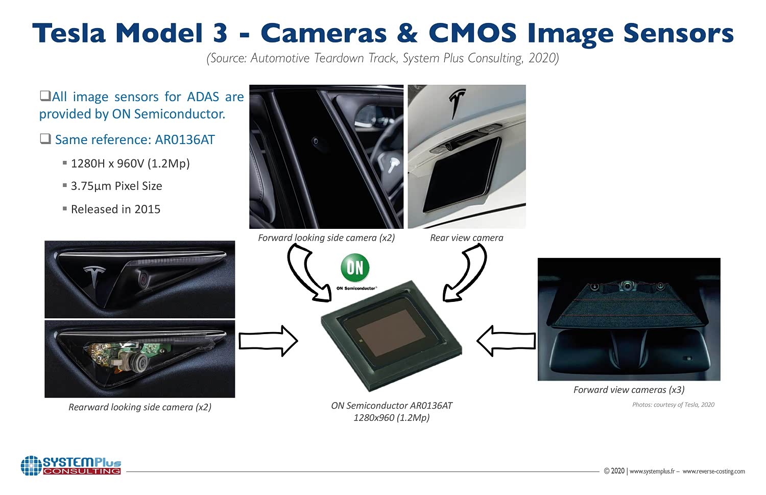 对于前向摄像头系统,特斯拉专门开发了一个三摄像头模组,以此来更好的配合这三个图像传感器发挥作用。这8个摄像头的像素均为120万,来自于On Semiconductor在2015年发布的产品。从这个角度来看,摄像头的成本或许没有想象中的高。而且考虑到这8个摄像头均出自于一家供应商,想必在之后的商务谈判方面也会有很大的优势。