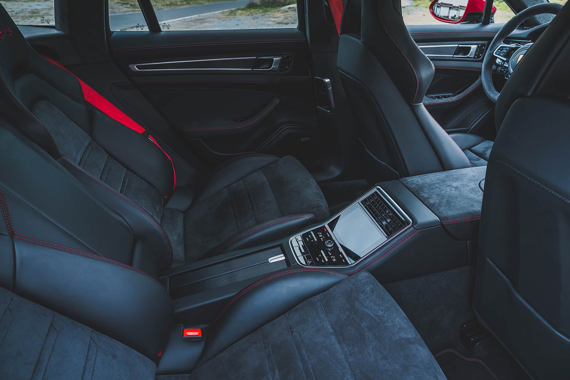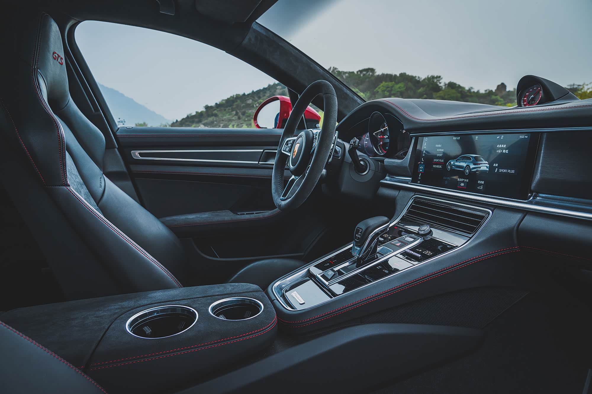 车内和普通版Panamera并无二致,依然是标准的保时捷家族设计语言,这个内饰设计可谓是非常德味儿,布局非常合理,细节设计也都非常到位,不过需要说明的一点是,无论是遍布车内的红色缝线,还是仪表盘中的红色表底,又或者是座椅头枕上的红色绣字,都是需要选配才能拥有的,而像抬头显示系统、全景影像或者后排那个带记忆功能的8向后排电动运动座椅,也都是选配而且价格不菲,保时捷绝对是玩选配的高手,能让人开开心心地掏钱去搭配出一台自己满意的车。