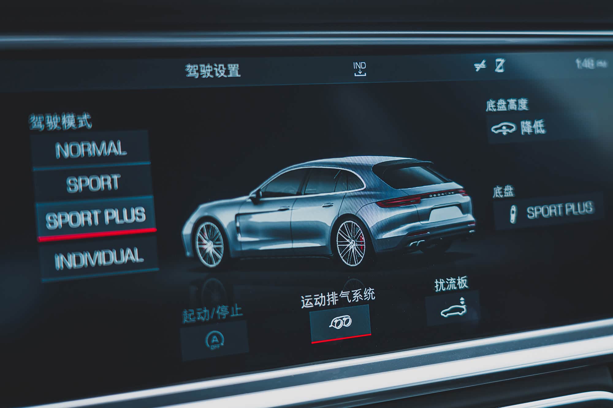 在GTS车型上,Sport Chrono组件是作为标准配置出现的,通过对软硬件的升级,从而让车辆在运动性方面有质的提升。在将Sport Chrono旋钮转至Sport Plus模式之后,车身高度会自动降至最低,悬架硬度进入Sport Plus状态,运动排气也随之自动打开,这个状态最适合Panamera GTS Sport Turismo大展身手。