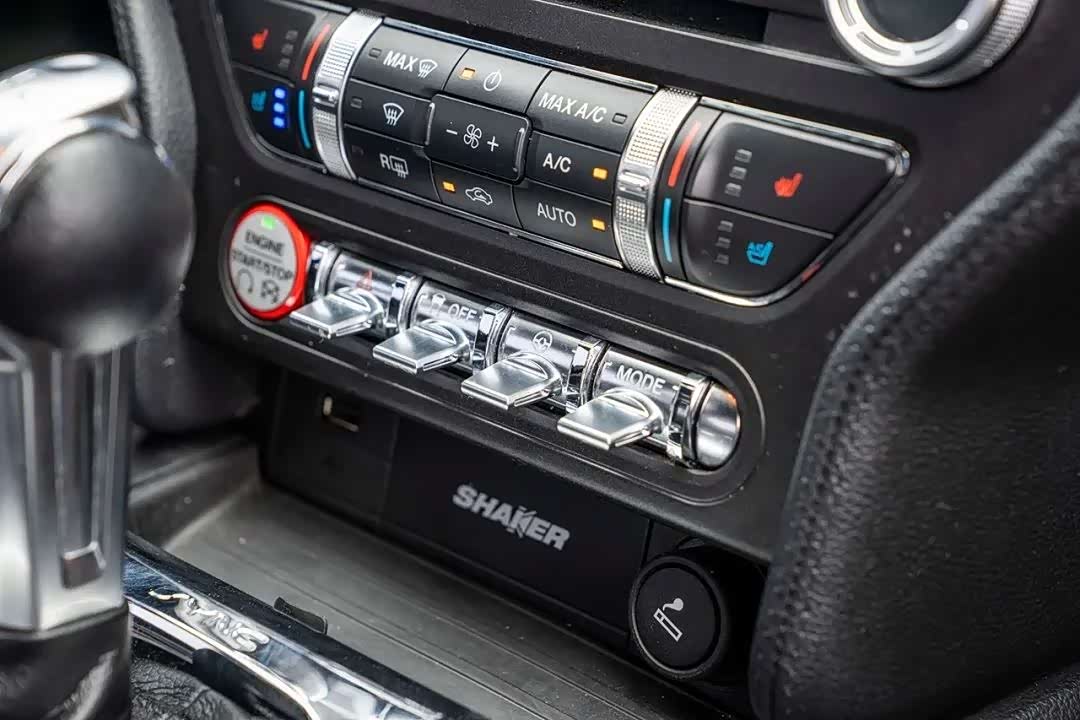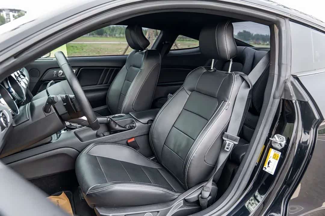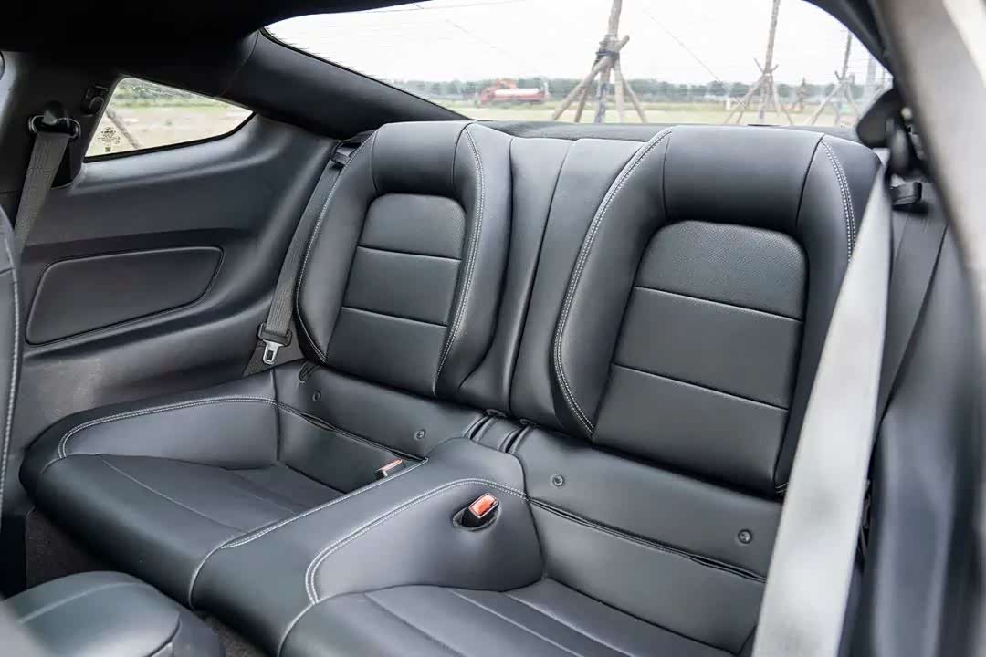 野马的后排座椅还是挺舒服的,但是因为整个车溜背的造型,后排头部空间相当局促。不过对于野马车来说,后排空间真的是一个无足轻重的事情。